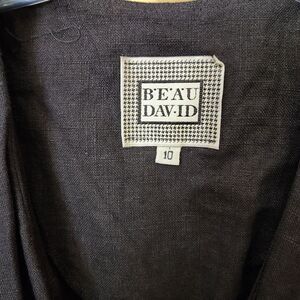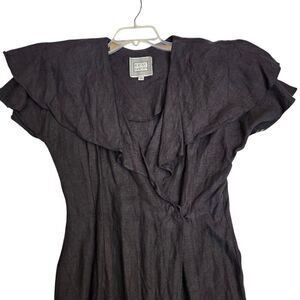 BEAU DAVID Vtg 80's ruffled neckline wrap 100% Linen dress Sz 10