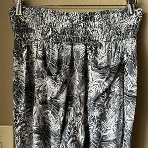 Description: BEAU DAWSON Palm Print Smocked Waist Ankle Pants
