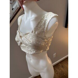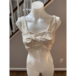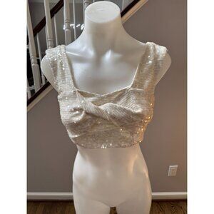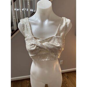 BEAU SOUCI White Sequin Twist Front Crop Top Blouse Tank Size 36