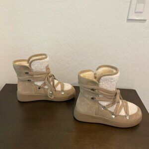 BEAU TODAY shearling/suede boots, camel color, platform bottom 35 EUC