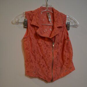 BEAUTEES Designed in Las Angeles Coral Floral Lace Zip Asymmetric Vest Girls 16