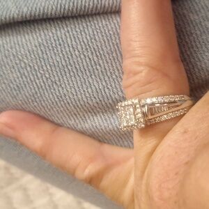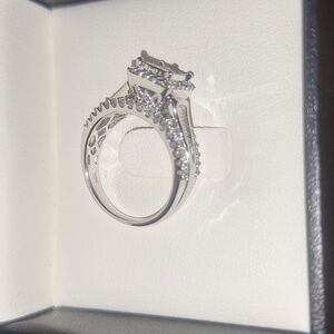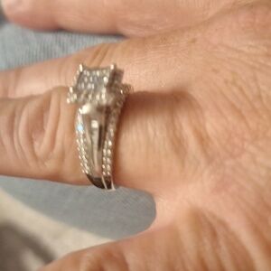 BEAUTIFUL 10K WHITE GOLD SQUARE DIAMOND CLUSTER ENGAGEMENT RING