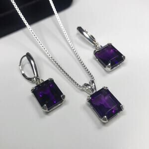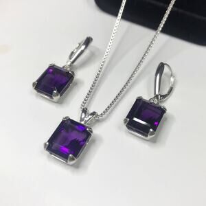 Gorgeous Amethyst Lever-back Earrings & Pendant Necklace Set