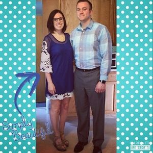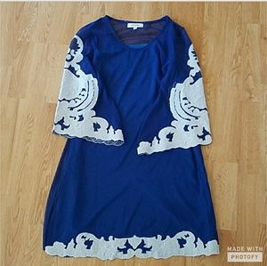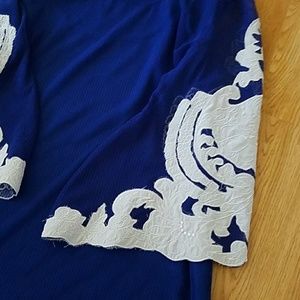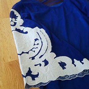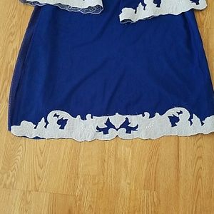 I have worn this a couple times. It's two pieces. Gorgeous shade of blue with beautiful white/gray details. Bought from a boutique. Those shoes in the cover photo are also for sale 💙