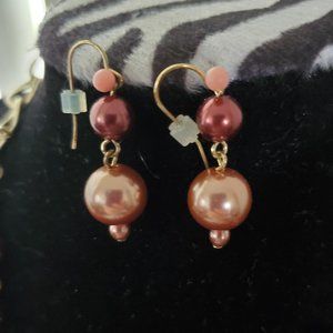 This necklace is just fun and interesting! The color combination is rich looking and would be easily matched with just about anything in your closet. This would be an ideal piece for travel as it can be worn casually or more formal. It has an extension so it can be worn at various lengths. The clasp works well and is a little larger so it is easier to manage. It comes with an adorable set of matching hook earrings. Good used condition.