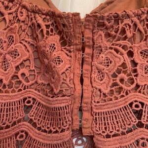 Worn once and in great condition! Its super flattering and absolutely stunning embroidery. Beautiful rust pink color!