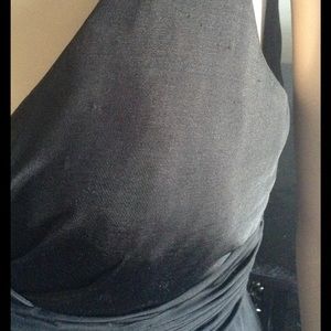 84% polyester 14% a Nylon 2% Spandex. Dry Clean Only. Size 6P. Beautiful dress, never worn. There are tiny pulls on the front of the dress. Is not very noticeable. The tags are still attached along with replacement beads. Price reflects this flaw. Reasonable offer's encouraged! Smoke free home. Retail price $259.00 before tax.