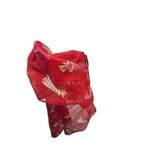 BEAUTIFUL Echo LOVE Red Silk Graphic Print Scarf GOOD CONDITION