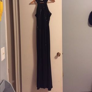 All black beautiful prom dress with sparkles down the middle. Absolutely beautiful