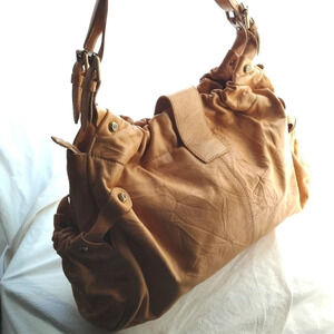 Big, beautiful, genuine leather, genuine article, Francesco Biasia Hobo Shoulder Bag, with distressed leather, brass hardware, and tons of style. This bad features, side pockets, a thick strap that can be altered to be longer or shorter by an inch or two, zip closure with magnetic flip clasp, roomy inside compartment with two additional slip pockets and one zippered pocket, lovely fabric print inside, and fun/cool looking distressed leather in a golden tan color. Awesome. Order it today ❤️😊👍, make an offer, bundle to save 🌹❤️👍. Excellent used condition.
