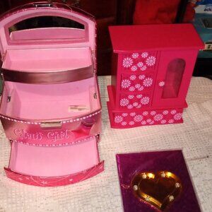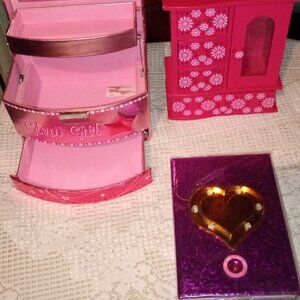 BEAUTIFUL GIRLS PINK LOT OF 2 JEWELRY BOXES AND A DIARY FOR HER SPECIAL THOUGHTS