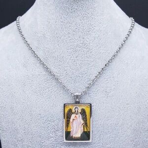 BEAUTIFUL Glass Arch Angel Michael Silver Protection Necklace Pendant