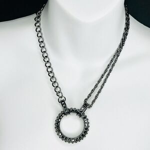 BEAUTIFUL Gun Metal Encrusted Hematite Bib Geometric Pendant Chain Necklace 4036