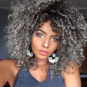 Beautiful 16 inch Ladies Wig. Fluffy Natural Wig with Curly Ringlets. Synthhetic, Heat Resistant Hair