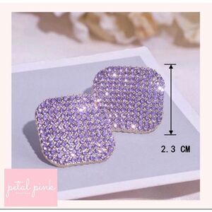 BEAUTIFUL Lavender Crystal Square Studs Fancy Festive Party Glam