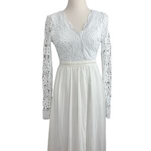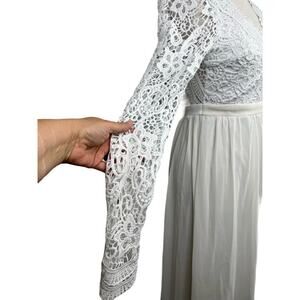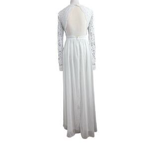 BEAUTIFUL MANIJU Ivory Lace Sheer Gown Long Sleeve Open Back Maxi Small