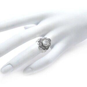 BEAUTIFUL MARCASITE FLOWER RING WITH CLEAR CZ CENTER STONE IN STERLING SILVER.