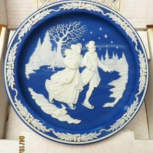 BEAUTIFUL NEW! Collectible Christmas Cameo Plate "Skaters at Midnight" R Akers