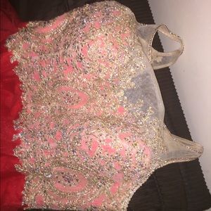 Being a big girl might make prom season a little hard. I fell in love with this dress and had the time of my life!!!! The dress it beautiful and will be beautiful on anybody, I know it! The red is unique, and shimmery. The back was altered so it could be tied in the back. The top is beautifully badazled. Only worn once, been put up and washed ever since.