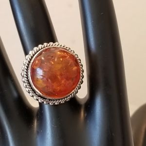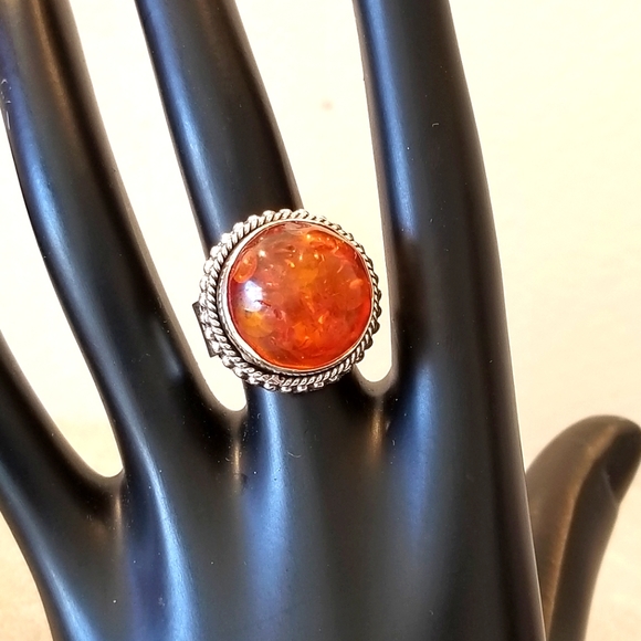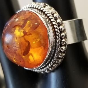 BEAUTIFUL BALTIC AMBER GEMSTONE 925 STERLING SILVER VINTAGE STYLE RING