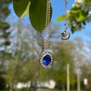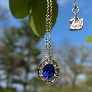 BEAUTIFUL SWAROVSKI blue and clear crystal silver tone necklace