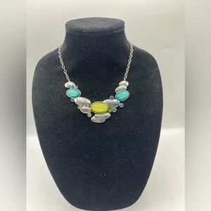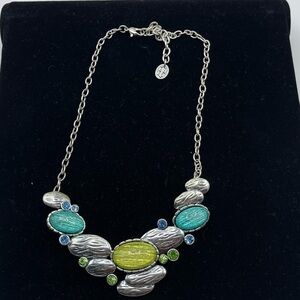 Signed Necklace with Multi Color Amber Crystals/Rhinestones