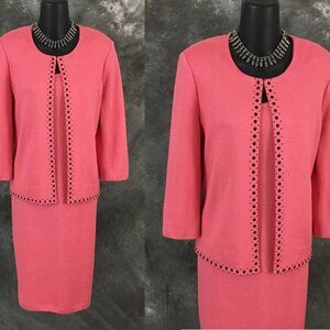 BEAUTIFUL St John collection knit pink jacket dress suit size 10