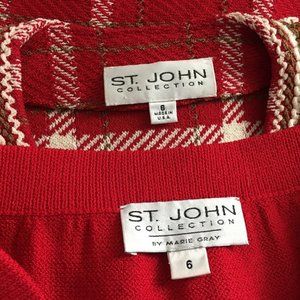 BEAUTIFUL St John collection knit red white fringe skirt suit size 6