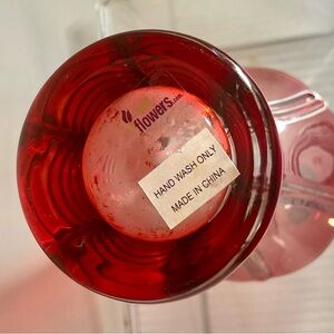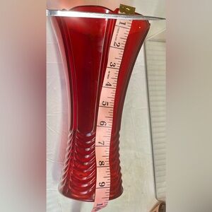 BEAUTIFUL VINTAGE RUBY RED LILY SHAPED GLASS VASE (HEIGHT 9 1/2)