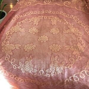 BEAUTIFUL VINTAGE SHEER TABLECLOTH 100% POLYESTER APPROX 64" DIAMETER