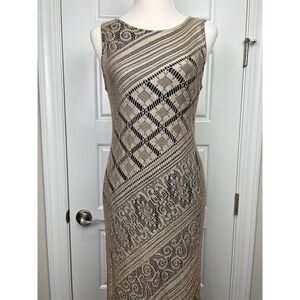 BEAUTIFUL Vintage Harlow Knit Crochet Fringed Lace Stretchy Tank Maxi Dress Size 10