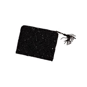 BEAUTIFUL Vintage Lancome Small Evening Bag--Black Beaded Tassel Purse, Lined boho Evening Bag Women Clutch Bag Delicate Banquet Bags Bride Wedding Party Purse