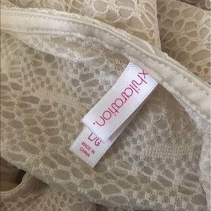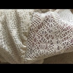 Size Large. Only worn a couple times to concerts! Super cute detailing, sheer around the waist (see picture). Looks great with a kimono and tights! :-)