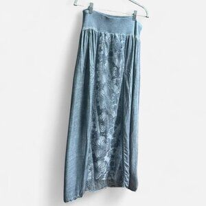 BEAUTIFUL Y2K 'COSMO - Made in Italy' BOHEMIAN SUPER LIGHT BLUE-ISH GRAY Maxi Skirt - with sheer LACE FLORAL PANELS! SUPER SOFT! Banded & pleated waist ~ elastic at waist!