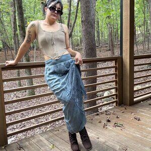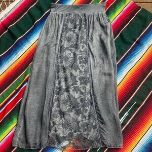 BEAUTIFUL Y2K BOHEMIAN SUPER LIGHT BLUE-ISH GRAY Maxi Skirt - w/ floral panels!