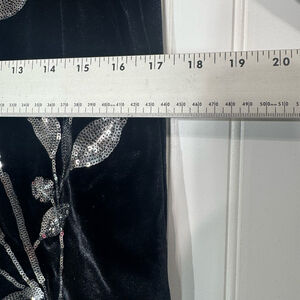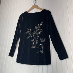 BEAUTIFUL by Lawrence Zarian Black Velvet Tunic Top Sequin Floral Appliqué Smal
