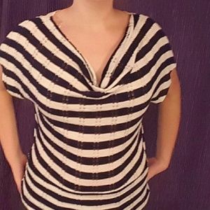 This boat neck top is one of my favorites, but doesn't get the love it deserves by sitting in my closet. It has a cinched waist and an open lace back. Navy and white.