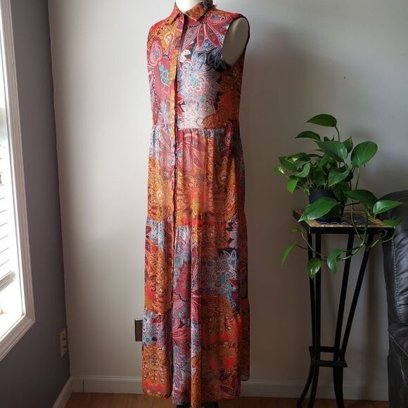 BEAUTIFUL PRINT BUTTON MAXI DRESS BOOHOO SIZE S