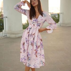 š ŗBEAUTIFULāPinkāFloralāMidiāDress