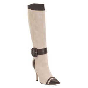 BEAUTIISOLES Beige Made In Italy Suede Alexis High Shaft Boots