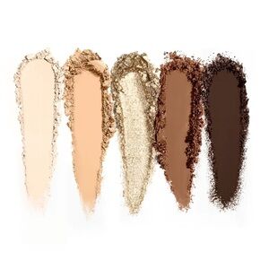 playa to palazzo features five shades: beach (creamy sand matte), papaya (warm beige matte), golden (soft gold shimmer), cocoa (warm chocolate brown matte), and espresso (deep brown matte).