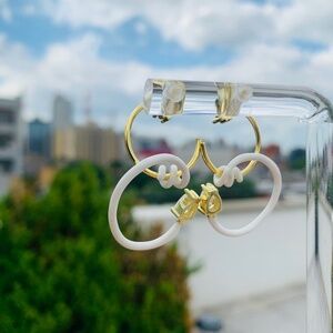 BEA Squiggle-design 9ct yellow gold and enamel earrings snake with White color de-lock avant garde