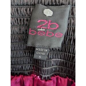 BEBE! 2B! BLACK SATIN BODICE, RED, PURPLE & BLACK ABSTRACT CHIFFON DRESS! SZ S