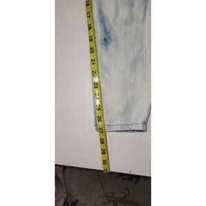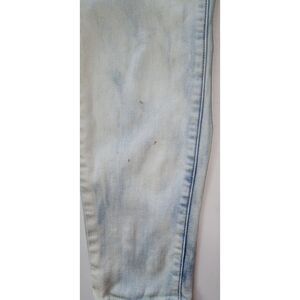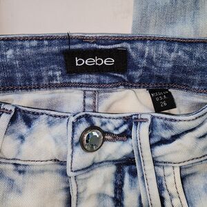 BEBE Acid Washed Skinny Jeans Sz 26. These cute women's denim jeans feature rhinestone buttons and have 5 pockets. There are a few small stains on lower leg (see pictures). Otherwise, good condition. Measure 27" long.