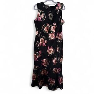 BEBE BLACK FLORAL MIDI/LONG DRESS SIZE 12 EUC