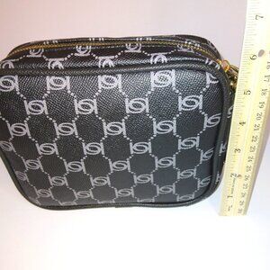 BEBE BLACK & GRAY GOLD MONOGRAM LEATHER CAMERA BAG CROSSBODY PURSE - NWT