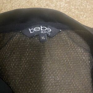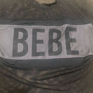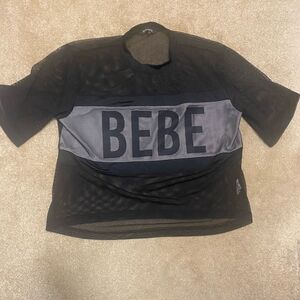 BEBE BLACK/WHITE SPORT MESH Jersey Style SHORT SLEEVE T-SHIRT SIZE XL.