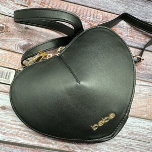 BEBE | Black Heart Faux Leather Crossbody Bag NWT