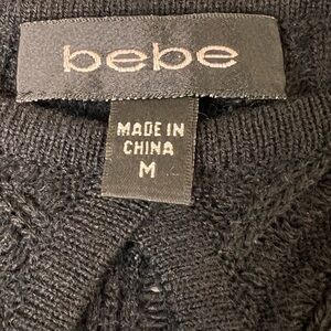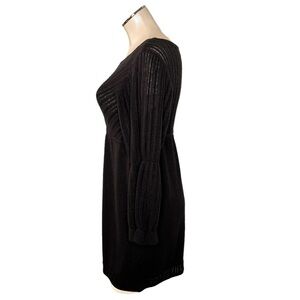 BEBE Black Knit Long Puff Sleeves Front Keyhole Dress LBD Size M