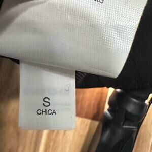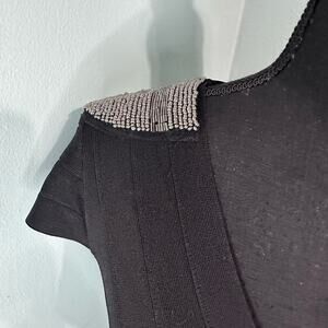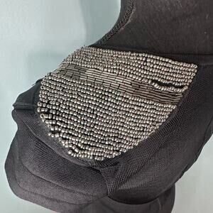 Elevate your style with this BEBE black metallic bandage crop top. Featuring a flattering V-neck and gold zipper, it offers a chic, Y2K-inspired look perfect for nights out or layering. Crafted from stretchy bandage fabric, it provides both comfort and structure. Size XS. Excellent pre-owned condition.
